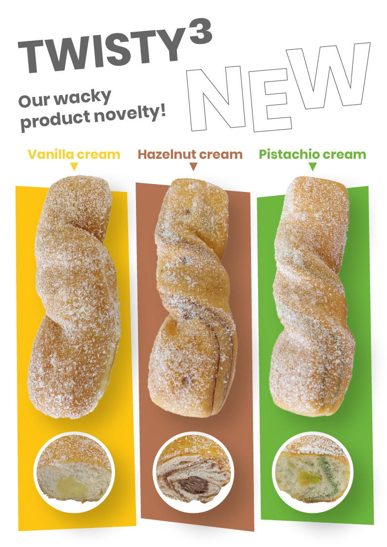 TWISTY is a fluffy, soft yeast dough delight in three delicious varieties: