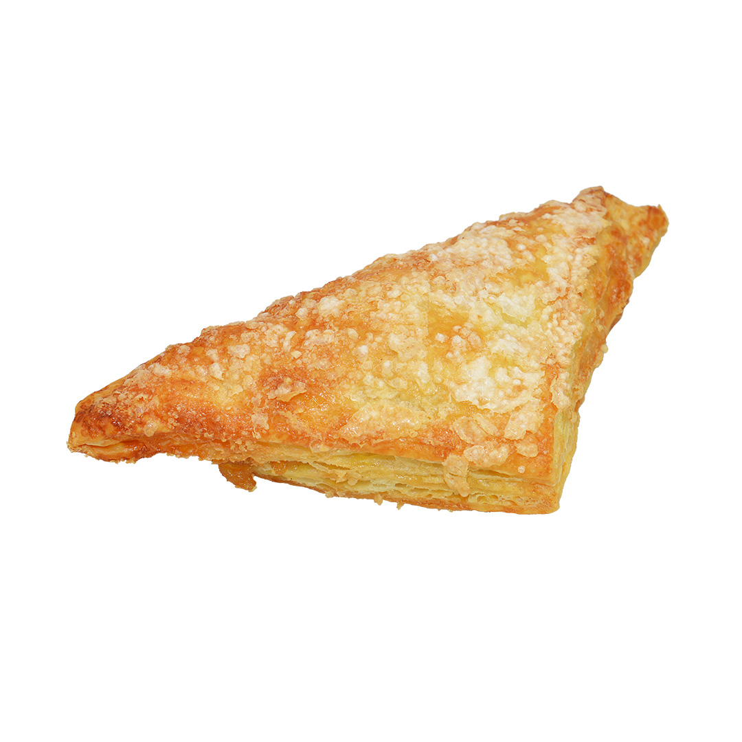 Blätterteigkleingebäck mit 28% Äpfeln und 1% Rosinen, mit Hagelzucker bestreut.