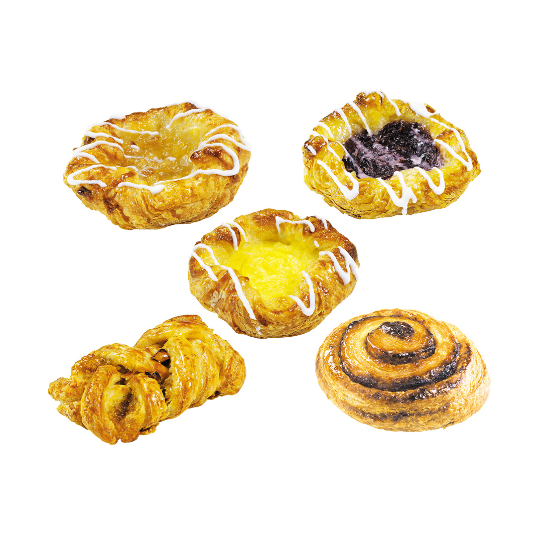 Plunderkleingebäck, locker gewickelt, ungleichmäßiges Porenbild, weiche Krume.