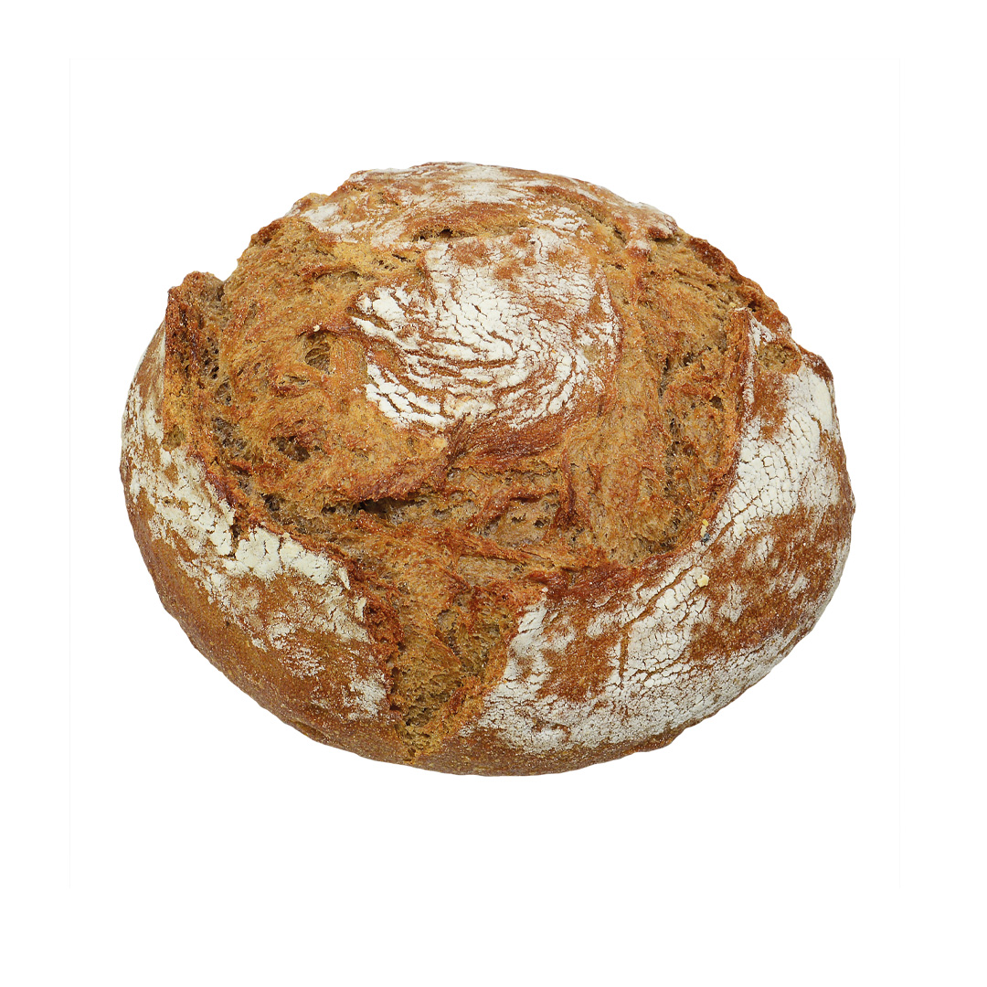 Weizenkleingebäck mit 13% Kartoffelflocken und einer rosenförmig aufgerissener Kruste, leicht bemehlt, auf Stein gebacken, ohne Backmittel und Konservierungsstoffe.
